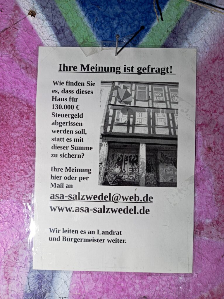 „Was ihr abreißt, gibt’s nie wieder. Was ihr baut, gibt’s überall.“(Zitat von Helga Weyhe, Ehrenbürgerin der Hansestadt Salzwedel und ehemaliges Mitglied des Arbeitskreises Salzwedeler